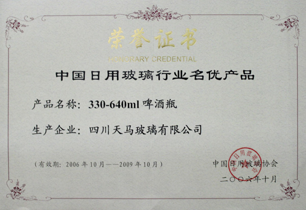 中国日用玻璃行业名优产品-啤酒瓶